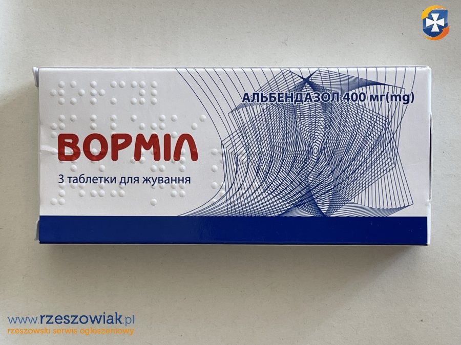 Vormil, Wormil, Ворміл, zawiera Albendazol 400 mg. Preparat przeciwpaso¿ytniczy o szerokim zakresie dzia³ania, aktywny wobec patogennych pierwotniaków, dzia³a na tkankowe i jelitowe formy paso¿ytów; skuteczny na jaja, larwy oraz formy doros³e paso¿ytów.
