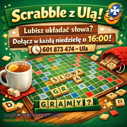 W każdą niedzielę o godz. 16.00 zapraszam do siebie na grę w Scrabble, a co dwa tygodnie w niedzielę o godz. 17.00 do mojego Saloniku literacko-muzycznego, po którym gramy w Rummikuba.