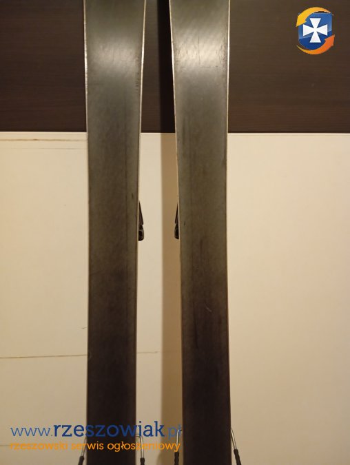 Narty zadbane, krawędzie grube, naostrzone, gotowe do jazdy.