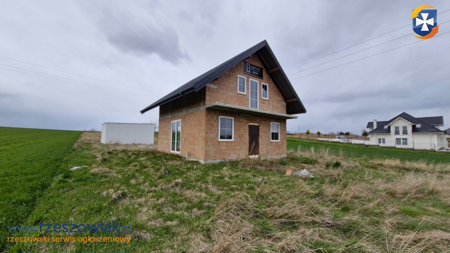 Przedstawiam ofertę sprzedaży domu wolnostojącego z poddaszem użytkowym, gotowego w stanie surowym zamkniętym, położonego na działce o powierzchni 43,25 ara. Nieruchomość o funkcjonalnym układzie pomieszczeń, w której skład wchodzi przedpokój, łazienka z oknem, kotłownia z funkcją pralni, salon z aneksem kuchennym i gabinet na parterze oraz 3 sypialnie i łazienka z oknem na piętrze.