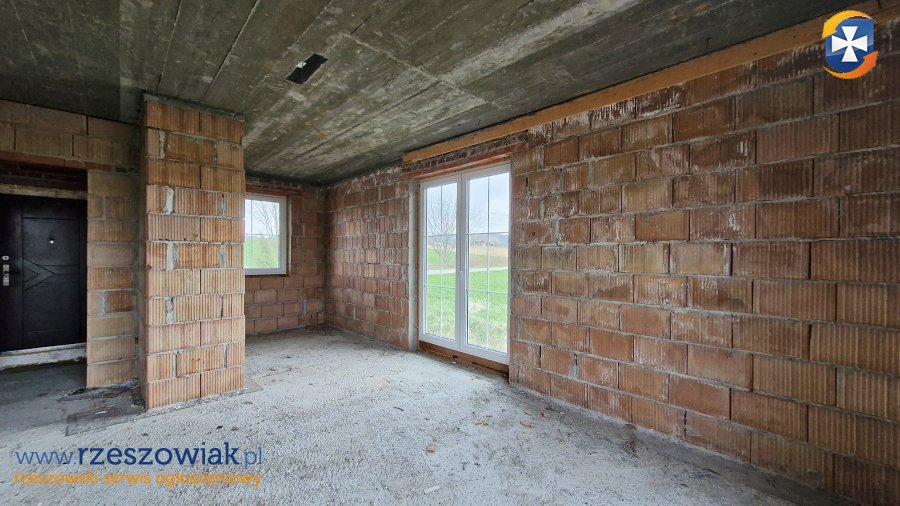 Przedstawiam ofertę sprzedaży domu wolnostojącego z poddaszem użytkowym, gotowego w stanie surowym zamkniętym, położonego na działce o powierzchni 43,25 ara. Nieruchomość o funkcjonalnym układzie pomieszczeń, w której skład wchodzi przedpokój, łazienka z oknem, kotłownia z funkcją pralni, salon z aneksem kuchennym i gabinet na parterze oraz 3 sypialnie i łazienka z oknem na piętrze.