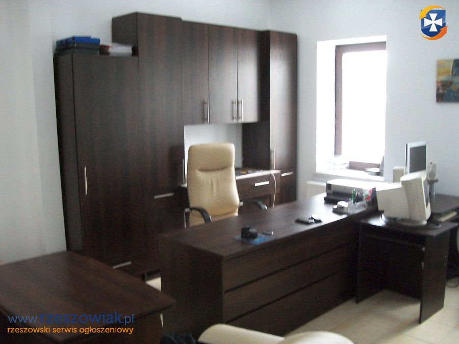 W zestawie zabudowa z podręcznym blatem, szafka stojąca na dokumenty, fotel, duże biurko z kontenerem i zestaw wypoczynkowy z ekologicznej skóry (narożnik, fotel, 2 pufy + solidna, drewniana, stabilna ława. Cena za całość 4500 zł. Można negocjować pojedyncze elementy. Zestaw wypoczynkowy w całości 2500 zł. STAN IDEALNY.