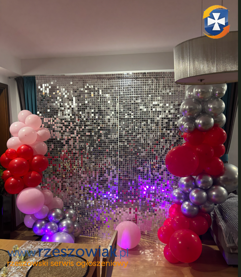 Stworzymy dla Ciebie ściankę, girlandę, kompozycje z balonami na stołach i wiele innych.