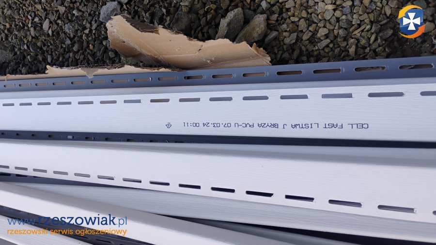 Witam. Do sprzedania 22 sztuki listwy typu J długość 3 mb w kolorze białym do podbitki dachowej. 1 sztuka listwy typu H o długości 3 mb. Odbiór osobisty