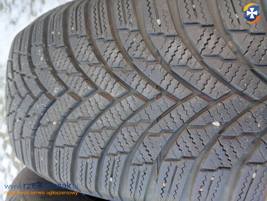 Całość w bardzo dobrym stanie, bez jakichkolwiek uszkodzeń lub innych defektów, głębokość bieżnika około 6.5mm, spokojnie na 3-4 sezony, data produkcji 2022, zakupione na jesień w 2022, użytkowane dwie zimy.