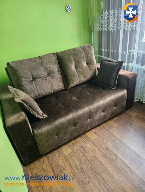 Witam. Do sprzedania widoczna na zdjeciach Sofa dwuosobowa rozkładana, z możliwością spania, stan Bardzo Dobry, jak NOWA. Materiał podobny do alcantary, mieni się kolor z jaśniejszego do ciemniejszego brązu, w zależności od ułożenia się kierunku materiału, proszę nie myśleć po oglądnięciu zdjęć, że łóżko jest zużyte, gdyż tak nie jest.