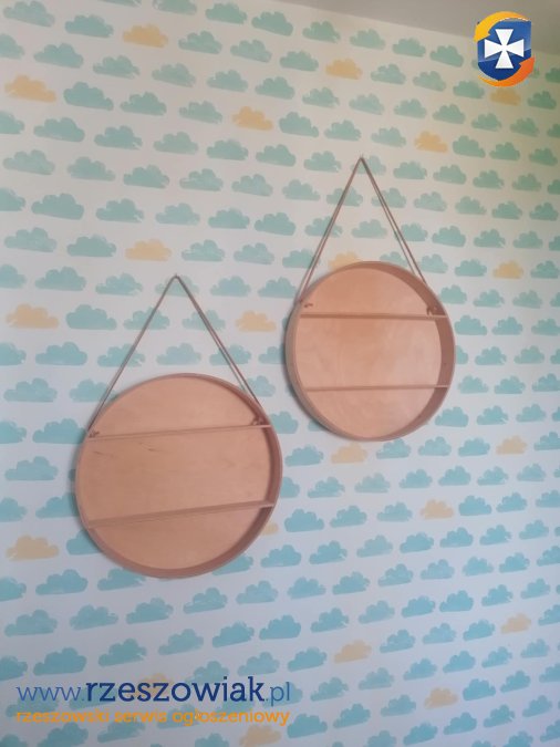 Mam do sprzedania dwie ładne półki ścienne do pokoju dziecięcego i nie tylko. Półki są w bardzo dobrym stanie, kupione u polskiego producenta - Belmam, wysoka jakość wykonania,średnica półki 50 cm, cena za szt. 80 zł.