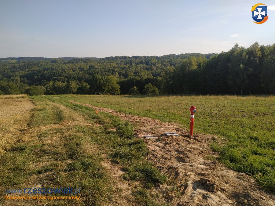 Działka ma dostęp do mediów: prąd na sąsiadującej działce oraz wodociąg wraz ze światłowodem.