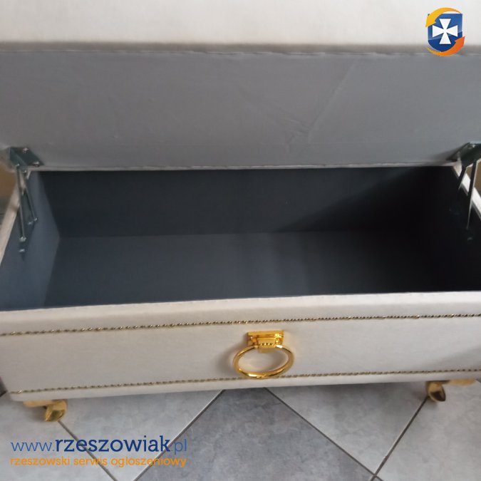 Witam mam do sprzedania nową pufe w kolorze beżowym z kołatką i pinezkami w kolorze złotym na nogach Ludwik o wymiarach 80/40 wys 45 w cenie 390 zł. Tel 606114995