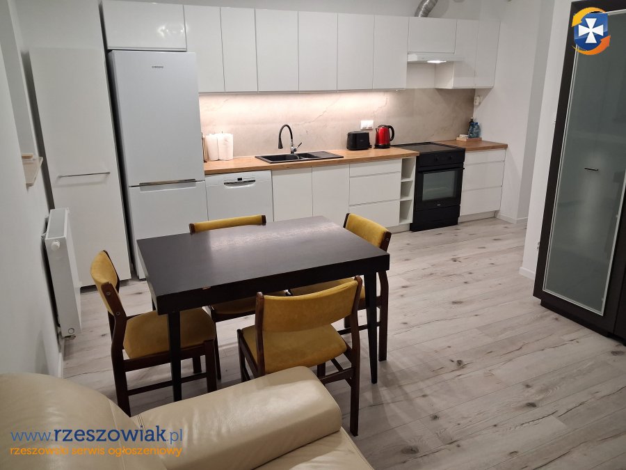 Mieszkanie jest umeblowane, wyposażone w pralkę, suszarkę, zmywarkę, kuchnię indukcyjną z piekarnikiem, lodówkę.