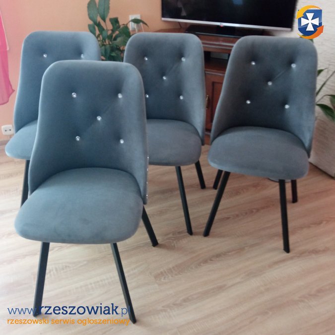Witam mam do zaoferowania 4 nowe krzesła w szarym Velwecie na nogach metalowych czarnych malowanych proszkowo. Możliwość wysyłki lub odbioru osobistego.Cena krzesła za sztukę .W razie pytań proszę dzwonić lub pisać. Tel.606114995