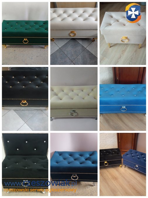 Witam mam do zaoferowania nowe pufy na zamówienie w różnych kolorach i wymiarach. Niektóre pufy są dostępne, proszę pytać o dostępność.pytać. Wymiar pufy czarnej że złotymi dodatkami to 80/40 wys 45 w cenie 390 zł, pufa czarna jest dostępna. Pufy są otwierane.W razie pytań proszę dzwonić lub pisać. Tel 606114995