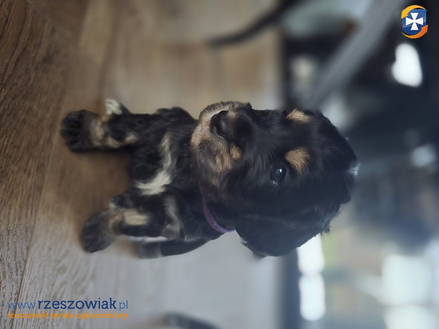 Mam do zaoferowania szczeniaka/suczke rasy cocker spaniel angielksi o masci black and than z biała szarfą.