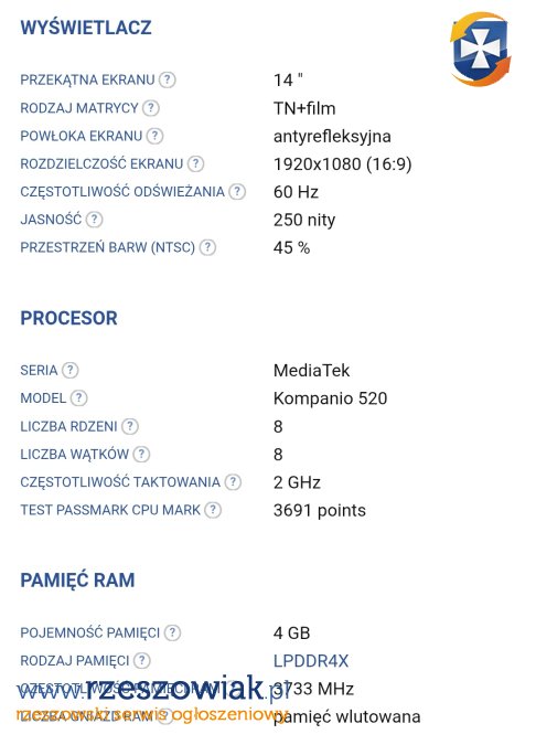 Witam. Na sprzedaż malo używany CHROMEBOOK Asus CM14 Cm1402cm2a. Stan ponad BDB. Dane techniczne (patrz foto). W zestawie:
