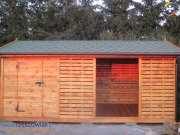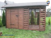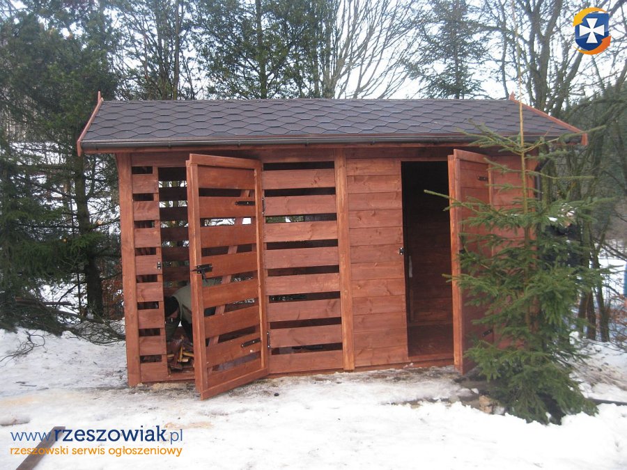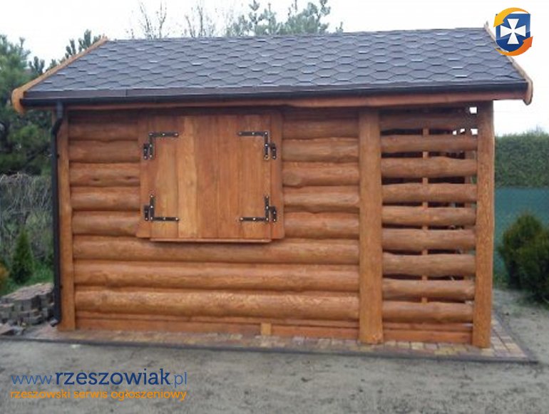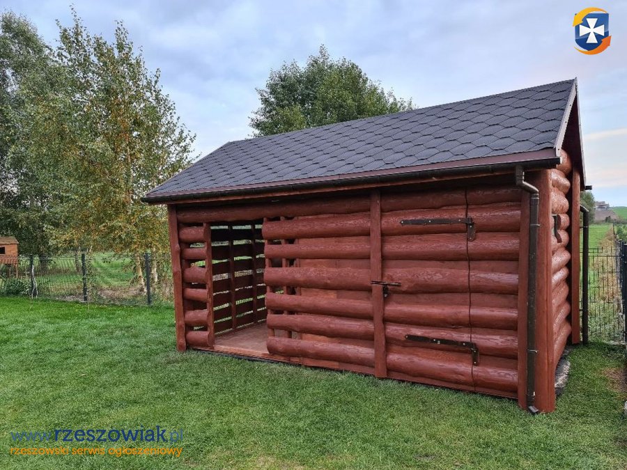 Witam na tej aukcji przedstawiam drewutnię z pół bali z ażurowym pomieszczeniem na drewno o wymiarze podstawy 400 x 200 cm.