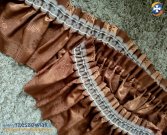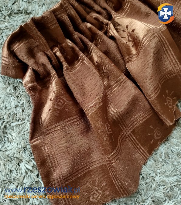 Oferuję uroczy lambrekin na taśmie marszczącej, który jest przeznaczony do pokoju, gdy chcemy uniknąć zbytniego zaciemnienia. Może być powieszony samodzielnie lub z firanami albo zasłonami. Kolor czekoladowy, z urzekającym motywem słoneczka.
