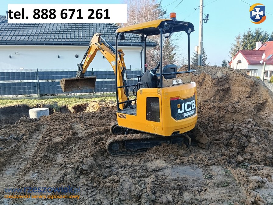 - wykopy pod wodę, prąd, gaz, kanalizację, przyłącza, szambo, zbiorniki, drenaże, odwodnienia, wykopy pod fundamenty, ogrodzenie, odkopywanie fundamentów