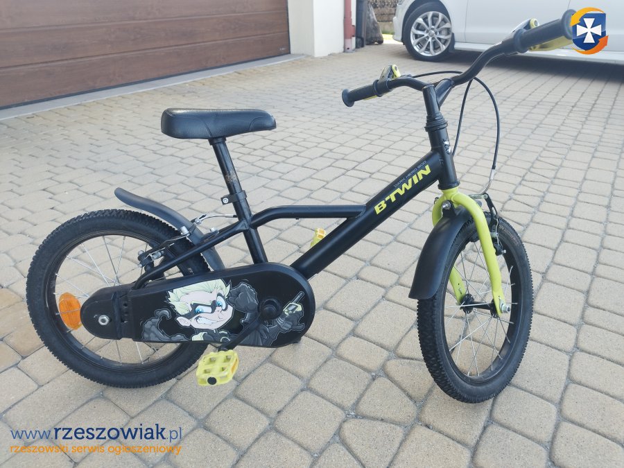 Witam Posiadam do sprzedania kilkuletni rower dziecięcy BTWIN Discover 16", rower w pełni sprawny, brak bocznych kółek, możliwy transport w okolicy Rzeszowa.