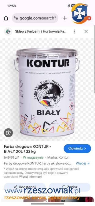 Witam posiadam farbę drogowa firmy kontur kolor biały .widoczna na zdjęciach malowałem podłoga i zostało w zasadzie połowę dodawałem pigment i miałem kolor szary może komuś się do czegoś przyda na ostatnim zdjęciu widoczne jest zdjęcie z z google