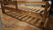 Posiadam na sprzedaż łóżko drewniane o wymiarze 160 X 70cm. Wykonane z litego drewna sosnowego [nie żadnej klejonki], skręcane na śruby. Używane przez jedno dziecko. Sprzedaję cały zestaw: łózko, stelaż , materac piankowy w pokrowcu i akcesoria do skręcenia.