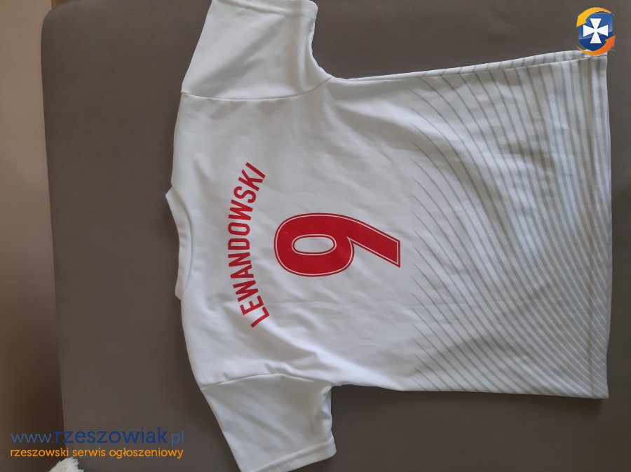 Sprzedam używane koszulki sportowe materiał poliester dla dziecka wzrost 134/140 jedna koszulka z napisem Lewandowski nr 9 (15zł) i Ronaldo numer 7 JEEP (15zł.) Cena do negocjacji