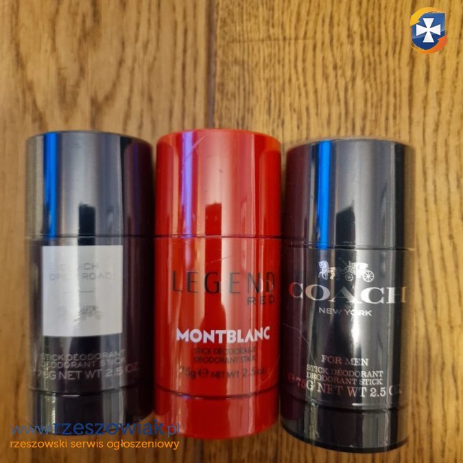 Witam. Sprzedam zestaw 3 deozodrantów w sztyfcie Montblanc Legend Red, Coach Open Road oraz Coach New York. Każdy w pełnej wersji 75g. Markowe w cenie nivea czy podobnej półki.