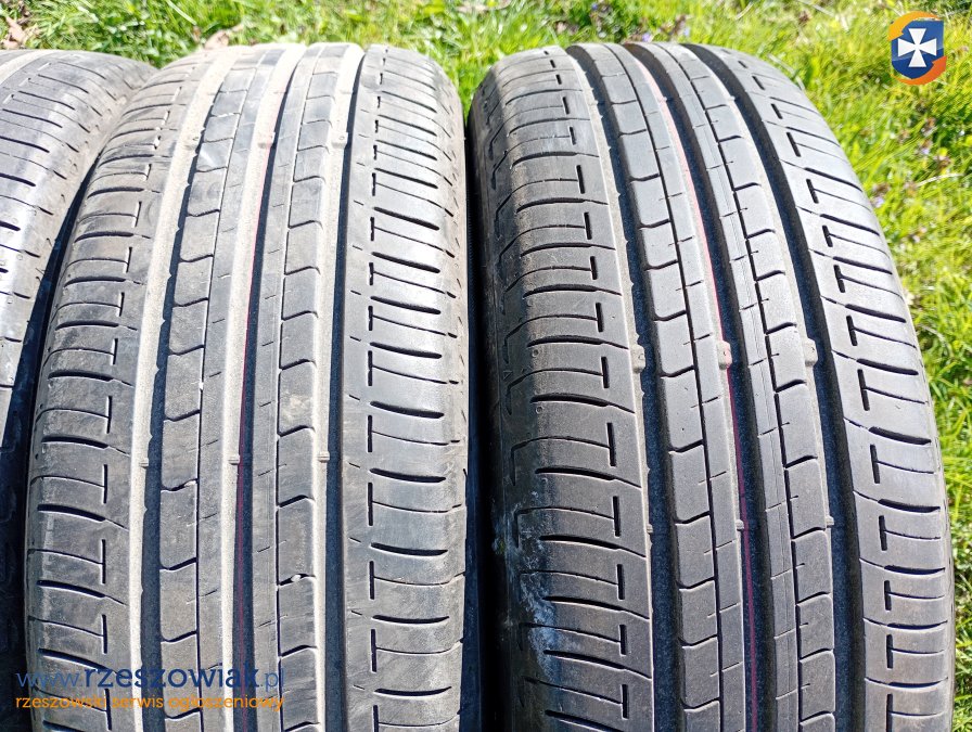 Całość w dobrym stanie, bez jakichkolwiek uszkodzeń, głębokość bieżnika około 6mm, spokojnie na trzy lub więcej sezonów, data produkcji 2021.