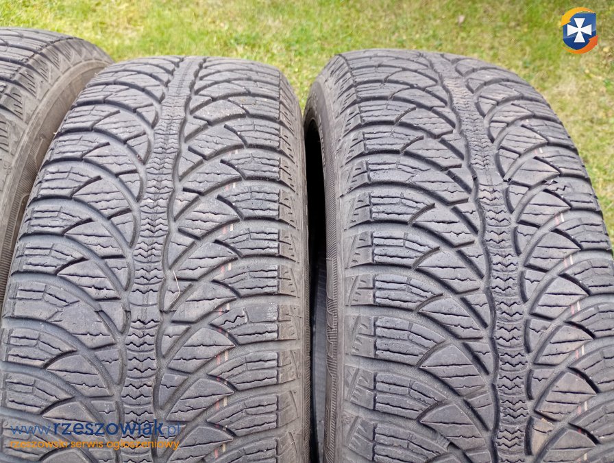 Całość w dobrym stanie, bez jakichkolwiek uszkodzeń, głębokość bieżnika na wszystkich oponach około 4,5mm, spokojnie na cały sezon lub dwa.