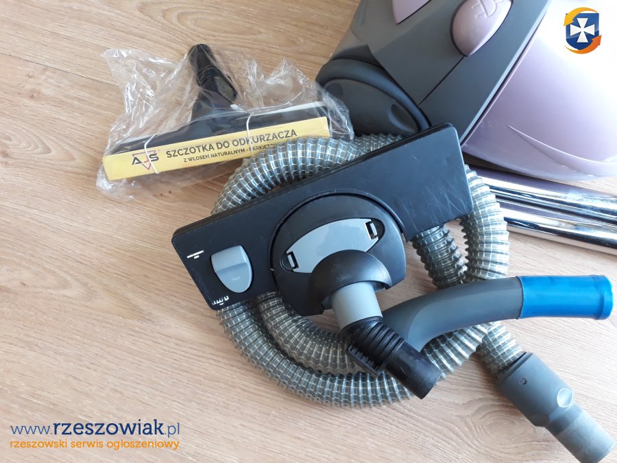 w zestawie wąż flexi, 2 rury segmentowe stalowe , duża szczotka , szczotka z włosia do parkietów i podłóg, małe ssawki w schowku