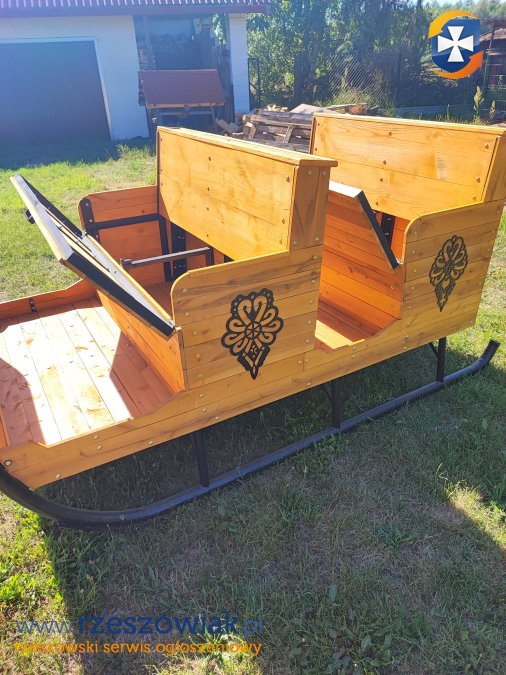 Witam.Sprzedam sanie do ciągnika, konstrukcja metalowa z rury fi 48x5 i kątownika 30x30x3 bardzo solidne i wytrzymałe. Długość 2,2m (bez dyszla) szerokość 1,3m. Całość obita deskami olszowymi heblowanymi i malowana impregnatem do drewna. Sanie posiadają schowki pod siedzeniami w celu zabrania prowiantu na kulig, jak i hak z tyłu w celu doczepienia dodatkowych sanek. Polecam.