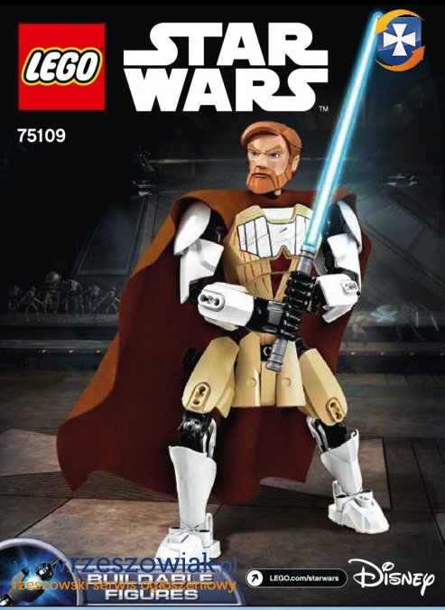 Witam Sprzedam widoczną na zdjęciu figurkę Lego Obi-Wan Kenobi, wys 27cm. - brak pudełka i instrukcji (do ściągnięcia ze strony Lego) - brak wszystkich części - kilka części nie jest oryginalnych z tego zestawu