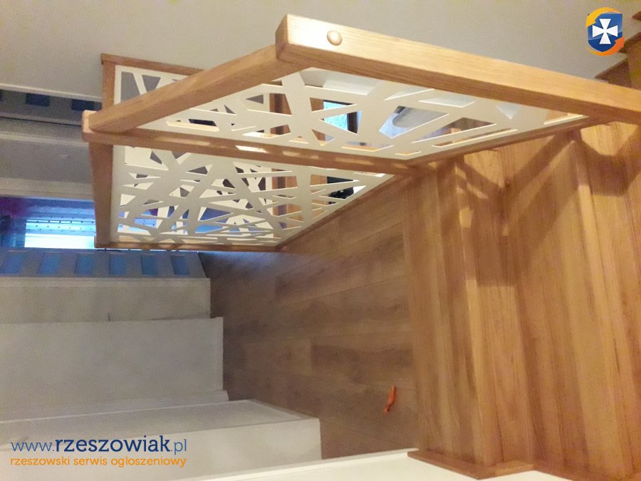 Wykonuję schody drewniane z drewna dębowego lub jesionowego na wymiar na konstrukcji metalowej lub na betonie. Kolor schodów oraz wzór balustrady dopasowany do indywidualnych potrzeb klienta.