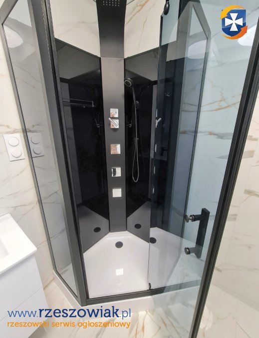 - Duża łazienka z kabiną prysznicową z hydromasażem