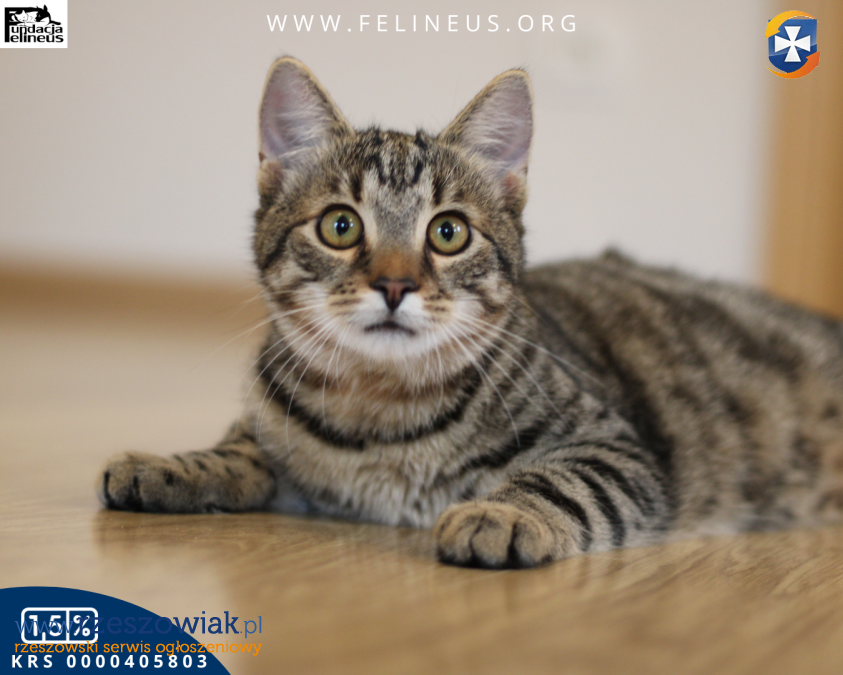Wrzosik - kocurek urodzony w czerwcu 2025. Wrzosik to najbardziej rozmruczany i przytulaśny kocurek jakiego znamy. Na sam widok człowieka włącza się mu tryb "traktor". Kocurek nie widzi świata poza człowiekiem. Chociaż kocim towarzystwem również nie pogardzi. Lubi zabawy z innymi kotami - małymi i dużymi, dlatego poleca się do adopcji w dwupaku lub też chętnie zamieszka w domu gdzie jest już kot. Wrzosik z prędkością świata wbiega na człowieka żeby położyć się mu na kolanach, dać mu kocie całuski lub też żeby być ponoszonym na rękach albo na ramieniu. Ten mały szkrab na pewno szybko skradnie wasze serce. Kocurek szuka domu niewychodzącego z zabezpieczonymi oknami i jeśli jest to balkonem.