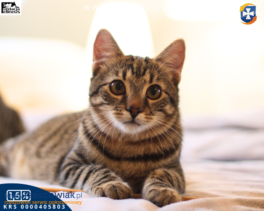 Wrzosik - kocurek urodzony w czerwcu 2025. Wrzosik to najbardziej rozmruczany i przytulaśny kocurek jakiego znamy. Na sam widok człowieka włącza się mu tryb "traktor". Kocurek nie widzi świata poza człowiekiem. Chociaż kocim towarzystwem również nie pogardzi. Lubi zabawy z innymi kotami - małymi i dużymi, dlatego poleca się do adopcji w dwupaku lub też chętnie zamieszka w domu gdzie jest już kot. Wrzosik z prędkością świata wbiega na człowieka żeby położyć się mu na kolanach, dać mu kocie całuski lub też żeby być ponoszonym na rękach albo na ramieniu. Ten mały szkrab na pewno szybko skradnie wasze serce. Kocurek szuka domu niewychodzącego z zabezpieczonymi oknami i jeśli jest to balkonem.