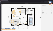 Parter: Wiatrołap:/2.5m2/, Hall/19.4m2/kuchnia +jadalnia/13.4m2/, salon z wyjściem na taras/23m2/, dodatkowy pokój sypialny (zamiast garażu) /18.4m2/, toaleta /2.2m2/, kotłownia/ 8.4m2/