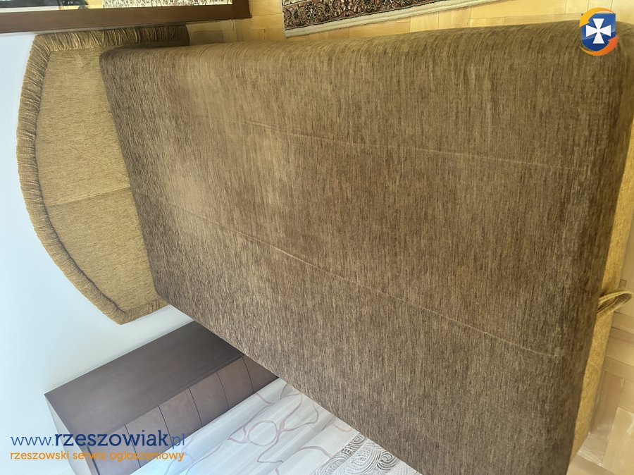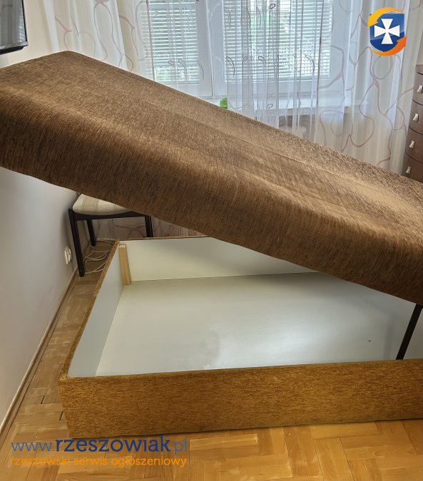 Wygodne łóżko z tapicerowanym zagłówkiem, z wbudowanym materacem i miejscem do przechowywania. Wygodne unoszenie na podnośnikach. Stan bardzo dobry. Bez narzuty i poduszek.
