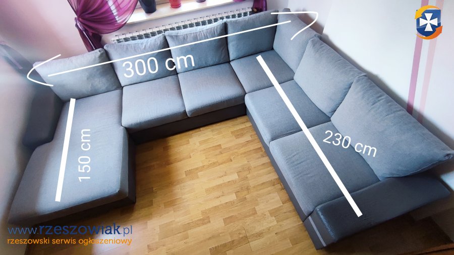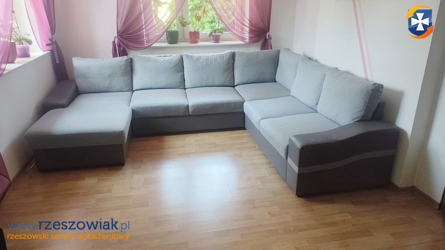 Wygodny i funkcjonalny narożnik w kształcie litery U, z funkcją spania. Mebel w dobrym stanie, wykonany z trwałych materiałów.