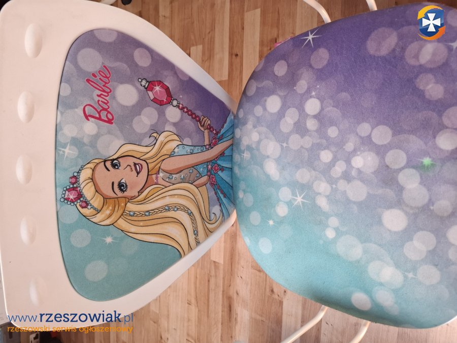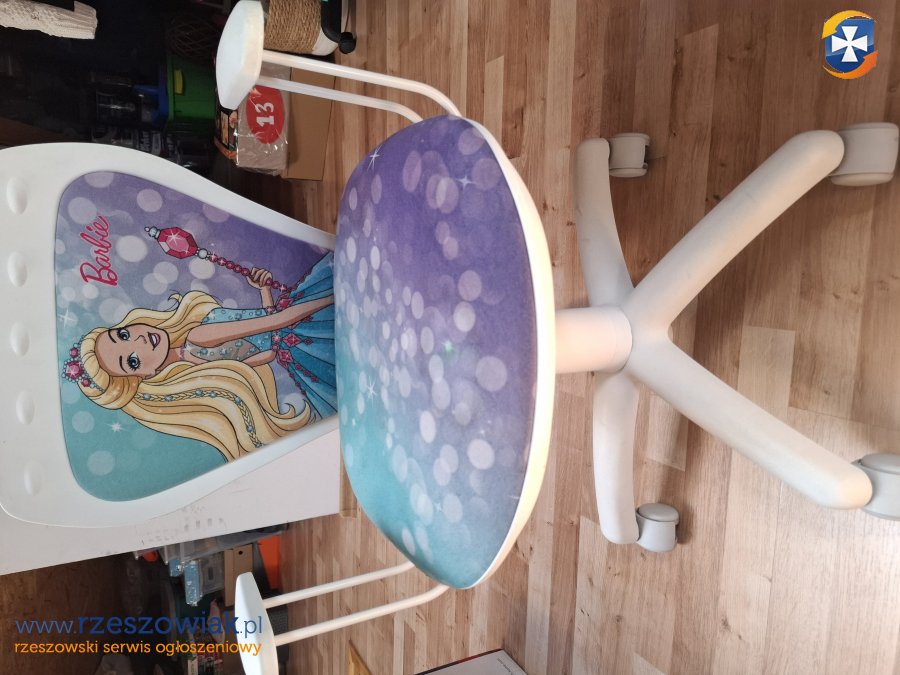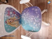 Wygodny, obrotowy fotel biurowy z motywem Barbie. Krzesło posiada miękkie siedzisko i oparcie, zapewniając komfort podczas pracy lub zabawy. Wykonane z wysokiej jakości materiałów, jest trwałe i stylowe. Idealny do pokoju dziecięcego.