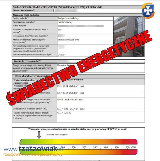 Wykonam świadectwo energetyczne dla mieszkania, domu, budynku komercyjnego w Rzeszowie lub na Podkarpaciu. W celu wyceny zapraszam do kontaktu telefonicznego: Paweł 727176881