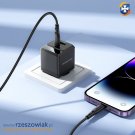 Wykonana z wysokiej jakości, ognioodpornego materiału PC, który zapewnia trwałość i bezpieczeństwo użytkowania. Dzięki technologii GaN ładowarka oferuje kompaktowy rozmiar i efektywne zarządzanie ciepłem.