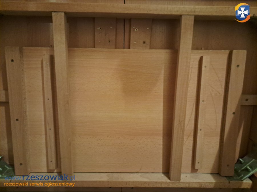Stół posiada odkręcane nogi, co ułatwia transport oraz przechowywanie. Na boku stołu widoczne jest uszkodzenie na krawędzi blatu pokazane na załączonym zdjęciu.