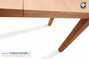 Stół posiada odkręcane nogi, co ułatwia transport oraz przechowywanie. Na boku stołu widoczne jest uszkodzenie na krawędzi blatu pokazane na załączonym zdjęciu.