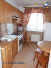 - w kuchni: lodówka, piekarnik z kuchenką gazową, stół z krzesłami, mikrofalówka, szafki kuchenne.