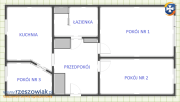 Mieszkanie składa się z dwóch pokoi, łazienki, przedpokoju, kuchni i balkonu. Dodatkowo z kuchni wydzielony jest trzeci mały pokoik (garderoba). Mieszkanie jest w pełni wyposażone i umeblowane (mikrofalówka, duża lodówka, pralka, kuchenka gazowa z piekarnikiem). Pomieszczenia są czyste. Ogrzewanie miejskie.
