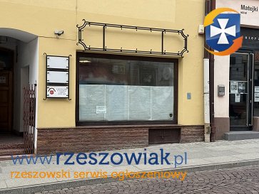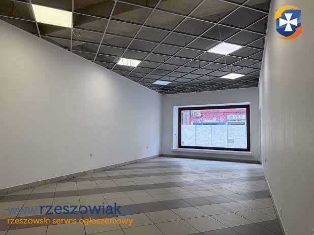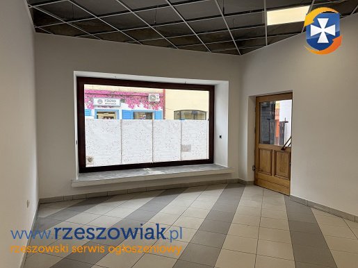 Duża witryna z wejściem z chodnika, miejsce na szyld.