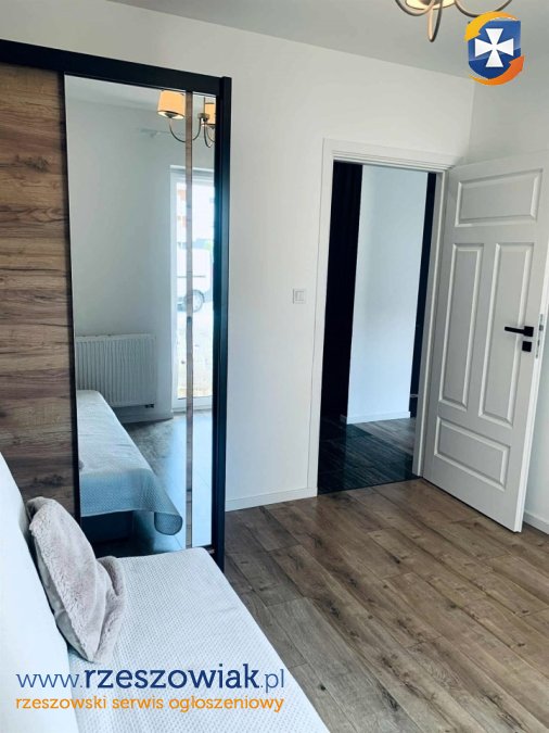 - jasna sypialnia małżeńska z oknami skierowanymi na stronę południową, z wygodnym dwuosobowym łóżkiem i bardzo dużą pojemną szafą przesuwną,