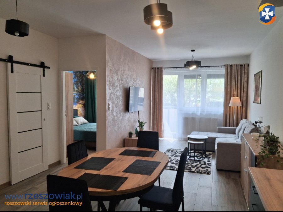 a w sypialni wewnętrzne.W części salonowej narożnik ze stolikiem + nowy telewizor,internet bezprzewodowy.W pobliżu Uniwersytet Rzeszowski oraz dużo sklepów.6 min.pieszo do pętli autobusowej
