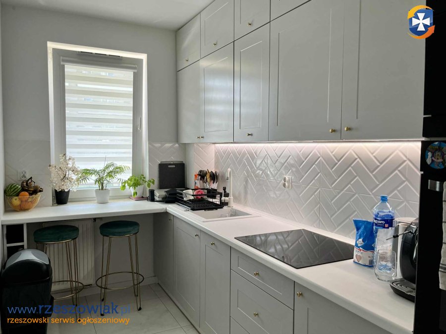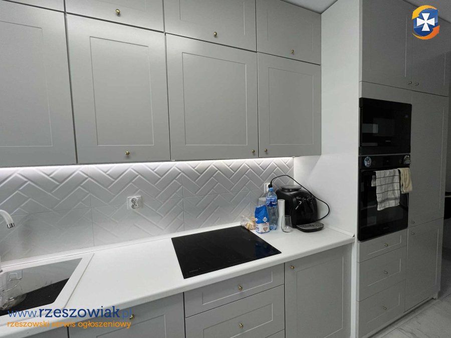 Mieszkanie jest wyposażone w zmywarkę, pralkę, płytę indukcyjną, lodówkę, piekarnik, mikrofalę, odkurzacz, naczynia kuchenne oraz rolety zaciemniające.