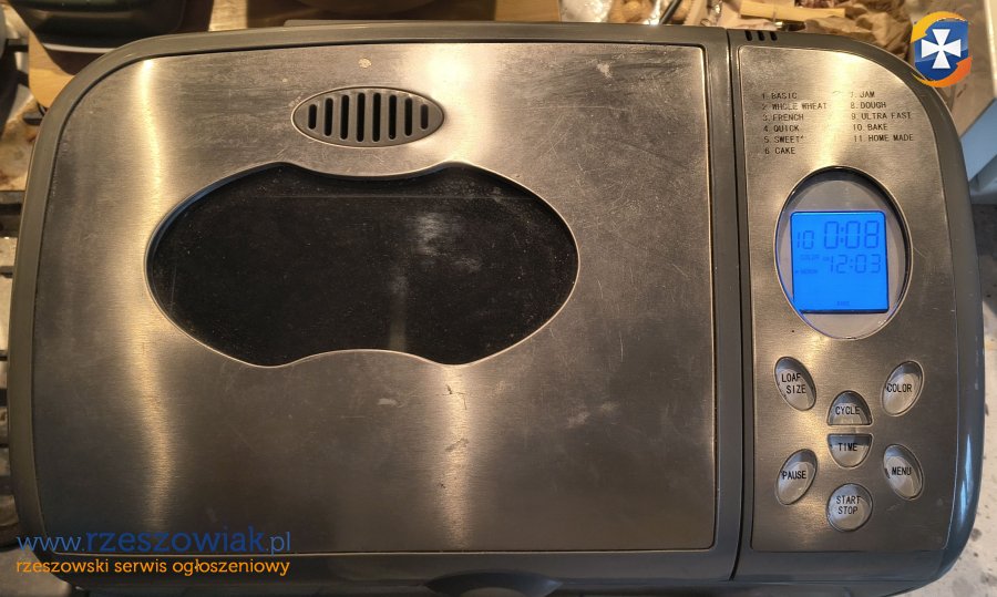 Wypiekacz użyty kilka razy i teraz na pewno grzeje ale resztę nie sprawdzę brak łopatek i drugiej misy